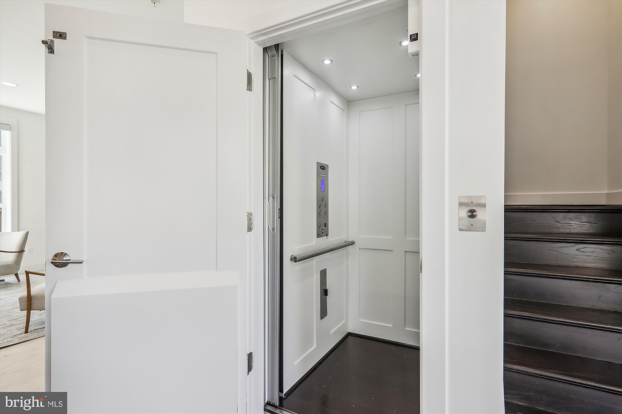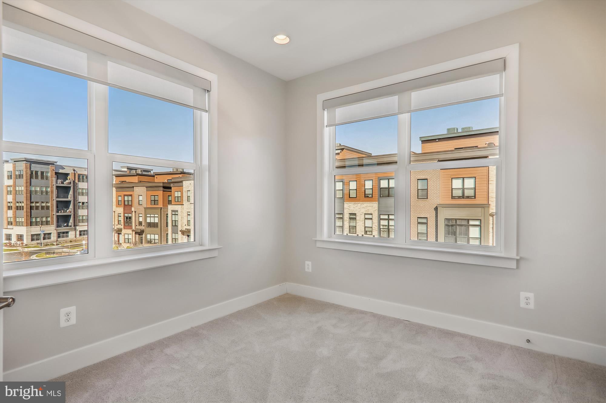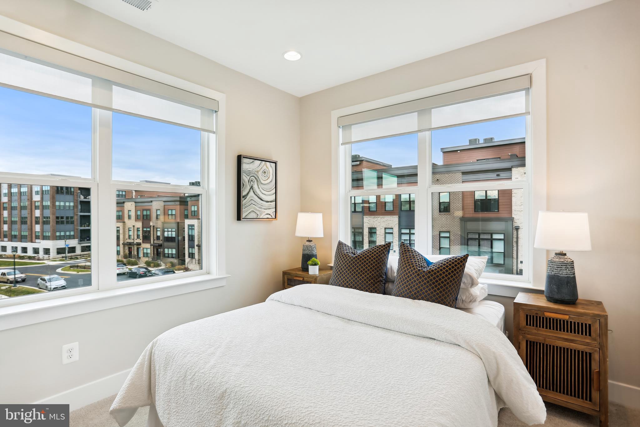 IMPROVED PRICE! Experience luxury living at its finest in the highly sought after Carter end unit model in Tower Oaks. A masterfully crafted residence by EYA, this residence offers an ideal blend of elegance and functionality. An expansive layout with 5 bedrooms, 4.5 bathrooms, and the added convenience of an elevator servicing all levels, this home sets the standard for luxury living. The first level of this home provides flexibility to suit your lifestyle with a versatile space that can serve as a functional office or bedroom with an ensuite full bathroom. Additionally, a convenient two-car garage is perfectly integrated into this level, ensuring ease of access and secure parking. Notably, the immediate access to an elevator eliminates the necessity for stairs entirely, enhancing the overall convenience and inclusivity of the home's design. As you step into the main living area, a symphony of natural light bathes the space, accentuating the 9'6" ceilings that amplify the openness of space seamlessly connecting the kitchen, dining area and the great room. Tucked away on this level is a discreet powder room adding to the functional elegance of the space. The deluxe kitchen is a culinary dream, featuring premium appliances, under cabinet lighting, quartz countertops, and exquisite upgraded cabinetry. The great room is adorned with a stunning linear fireplace complimented by back-lit built-in bookcases and an accessible deck for grilling and relaxation. An advanced automation system controls audio, video and window shades on this level and in the primary bedroom suite. The third level of the home unfolds to reveal a sanctuary of comfort. The primary suite beckons with 2 spacious walk-in closets, a wall safe and a spa bath that exudes relaxation complete with a glass walk-in shower, lighted mirror, comfort height water closet bowls, with dual flush and quartz countertops. Two more bedrooms, a full bathroom and the laundry complete the practicality of this level. Ascend to the fourth level a versatile space that can serve as a fifth bedroom with a full bathroom, a second family room or an inspiring office. This level opens up to a private roof deck, featuring Floor Tech flooring and pre-wiring for a TV, creating an idyllic retreat for relaxation or entertainment. Throughout this home, discover additional upgrades such as hardwood flooring, automated window shades, and contemporary base moldings. The integration of the energy- efficient features and surround sound on the main level and primary suite enhances both comfort and functionality.