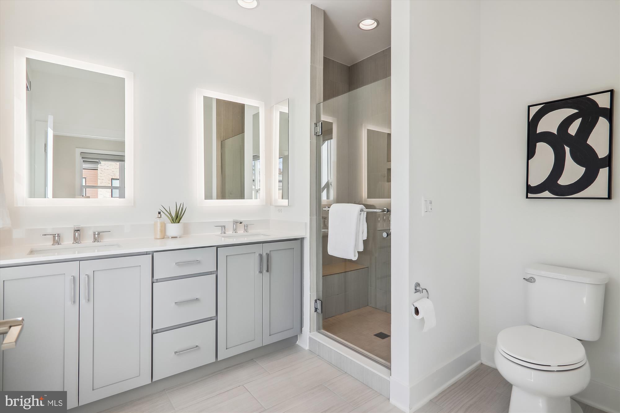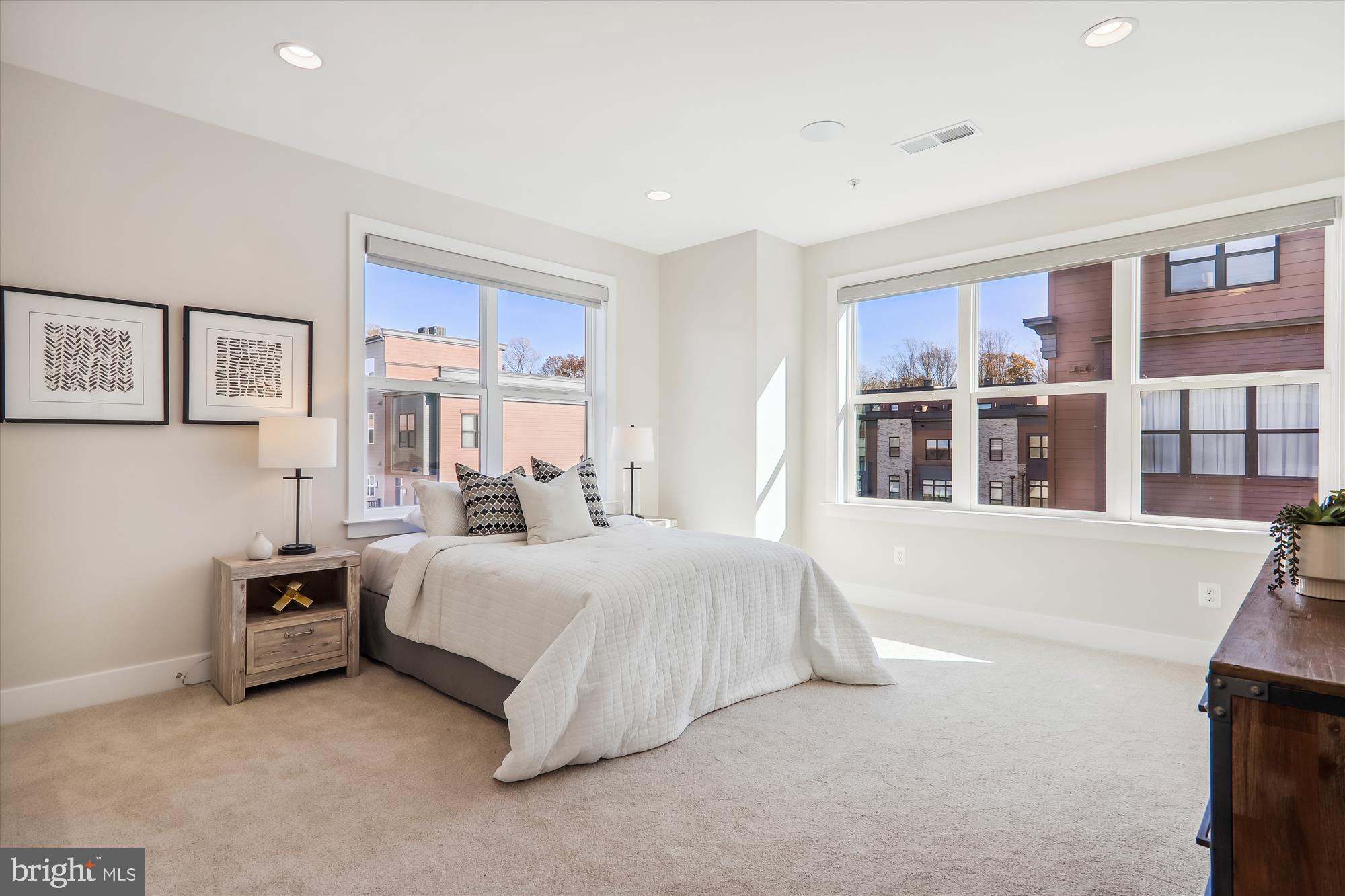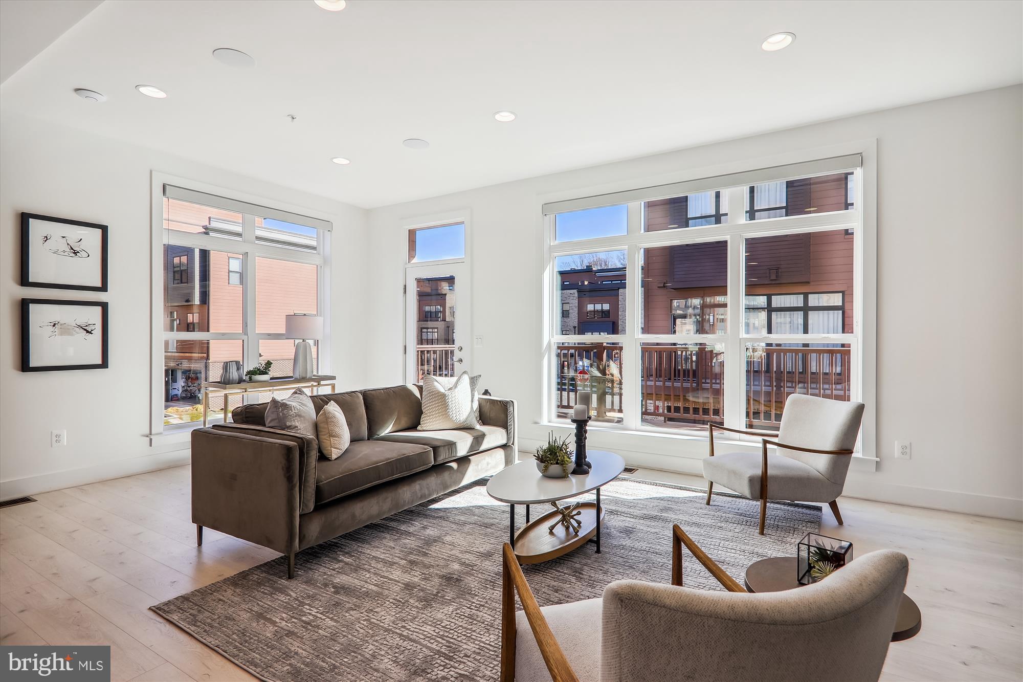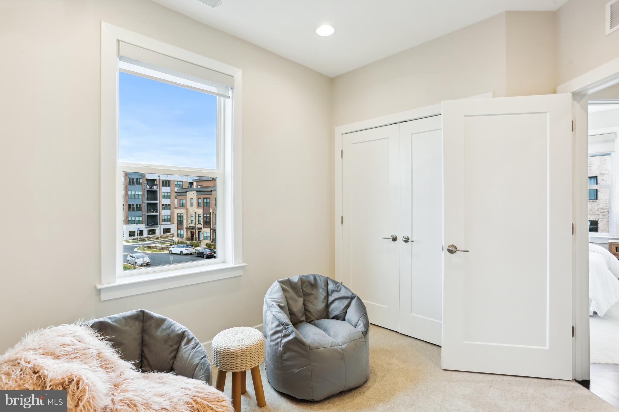 IMPROVED PRICE! Experience luxury living at its finest in the highly sought after Carter end unit model in Tower Oaks. A masterfully crafted residence by EYA, this residence offers an ideal blend of elegance and functionality. An expansive layout with 5 bedrooms, 4.5 bathrooms, and the added convenience of an elevator servicing all levels, this home sets the standard for luxury living. The first level of this home provides flexibility to suit your lifestyle with a versatile space that can serve as a functional office or bedroom with an ensuite full bathroom. Additionally, a convenient two-car garage is perfectly integrated into this level, ensuring ease of access and secure parking. Notably, the immediate access to an elevator eliminates the necessity for stairs entirely, enhancing the overall convenience and inclusivity of the home's design. As you step into the main living area, a symphony of natural light bathes the space, accentuating the 9'6" ceilings that amplify the openness of space seamlessly connecting the kitchen, dining area and the great room. Tucked away on this level is a discreet powder room adding to the functional elegance of the space. The deluxe kitchen is a culinary dream, featuring premium appliances, under cabinet lighting, quartz countertops, and exquisite upgraded cabinetry. The great room is adorned with a stunning linear fireplace complimented by back-lit built-in bookcases and an accessible deck for grilling and relaxation. An advanced automation system controls audio, video and window shades on this level and in the primary bedroom suite. The third level of the home unfolds to reveal a sanctuary of comfort. The primary suite beckons with 2 spacious walk-in closets, a wall safe and a spa bath that exudes relaxation complete with a glass walk-in shower, lighted mirror, comfort height water closet bowls, with dual flush and quartz countertops. Two more bedrooms, a full bathroom and the laundry complete the practicality of this level. Ascend to the fourth level a versatile space that can serve as a fifth bedroom with a full bathroom, a second family room or an inspiring office. This level opens up to a private roof deck, featuring Floor Tech flooring and pre-wiring for a TV, creating an idyllic retreat for relaxation or entertainment. Throughout this home, discover additional upgrades such as hardwood flooring, automated window shades, and contemporary base moldings. The integration of the energy- efficient features and surround sound on the main level and primary suite enhances both comfort and functionality.