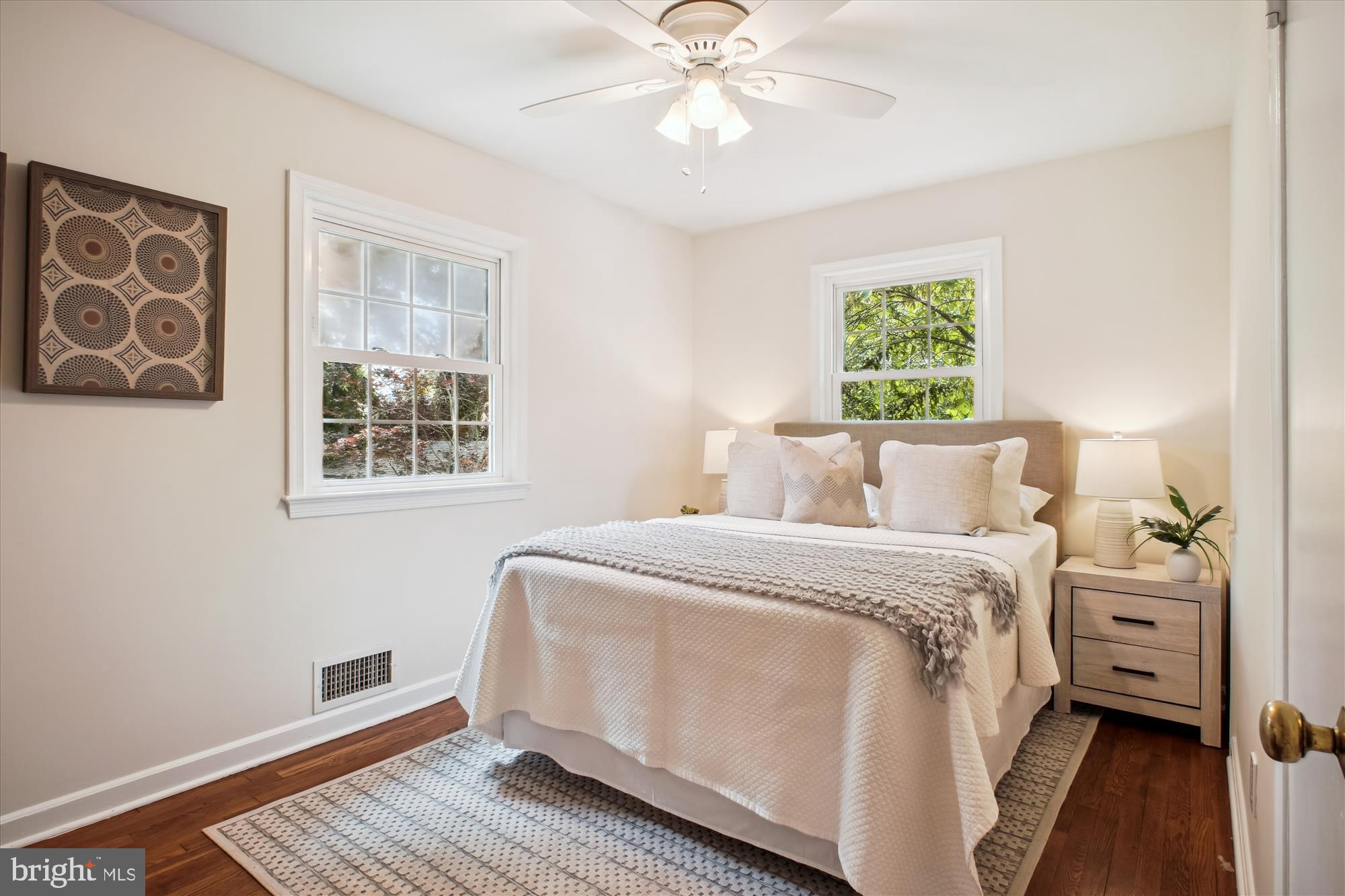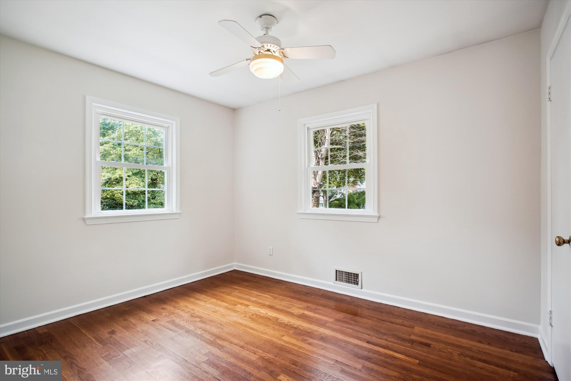The newly renovated kitchen boasts stylish finishes and newly installed luxury vinyl plank flooring. Hardwood flooring runs through the rest of the main level.